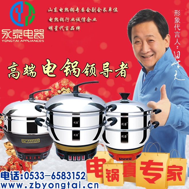淄博周村永泰電器廠是一家專業生產多功能電熱鍋,鑄鐵電熱鍋,不銹鋼電水壺,電煎鍋等的專業廠家。歷經多年的發展,已發展成為國內較有影響力的電熱鍋生產廠,本廠所生產的“創鑫”牌電熱鍋,以優質的產品質量,優惠的價格已得到眾多消費者的認可,為進一步拓展市場,現面向全國誠征代理商、經銷商。