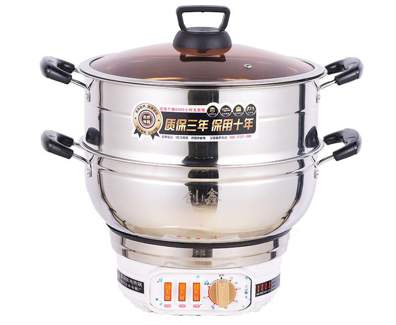 旋風王—定時調溫電熱鍋,具有定時功能,溫度可調,配置0.7MM精拋鍋體,0.4MM蒸籠,1.5米電源線,規格28CM\30CM\32CM,可定時,可調溫。